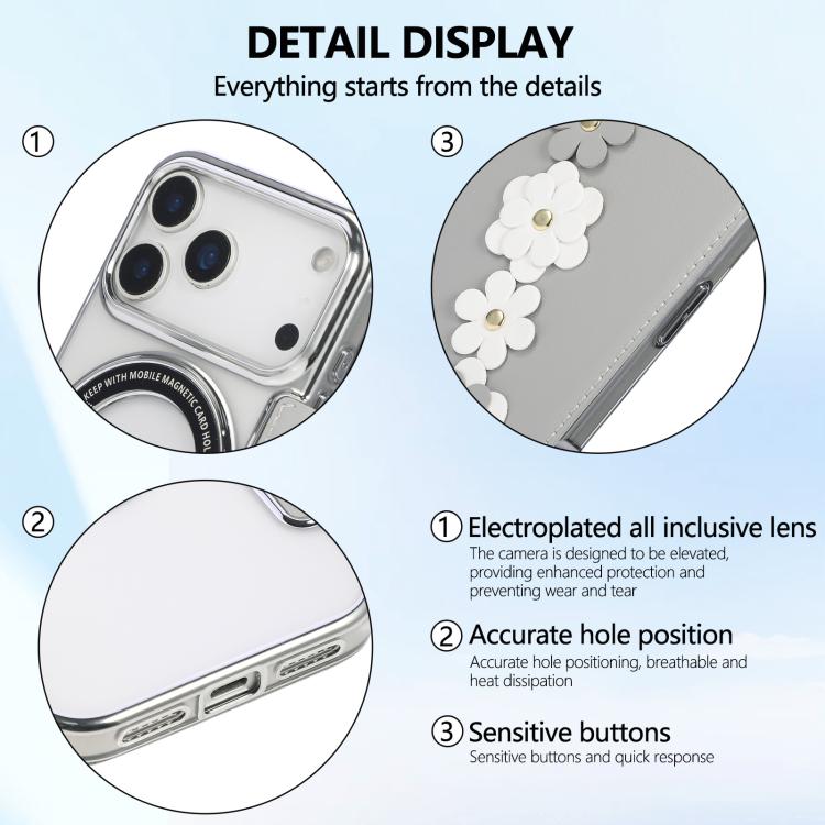 Floral Magnetic Electroplated Card Holder Vegan Leather Phone Case, For iPhone 17 Pro Max, For iPhone 17 Pro, For iPhone 17, For iPhone Air