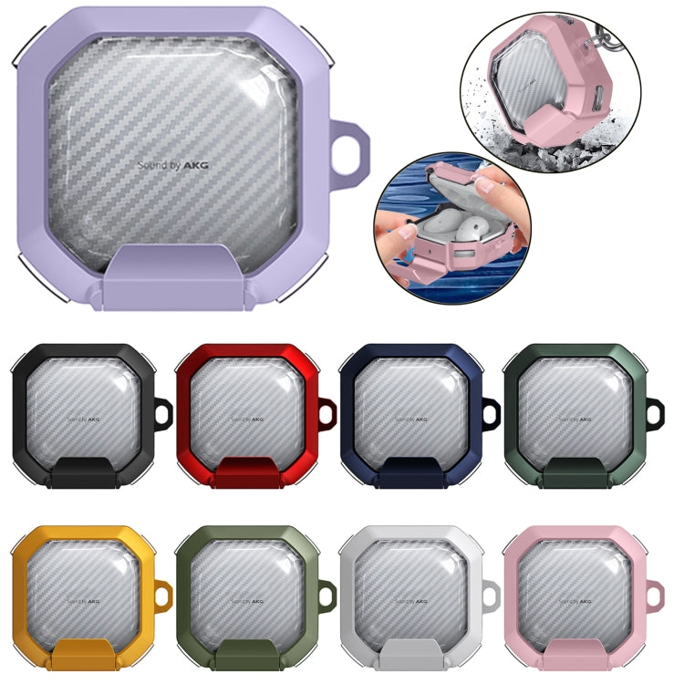 Transparent Carbon Fiber TPU Hybrid PC Case with Hook & Holder, For Samsung Galaxy Buds2 / Live / Pro / FE