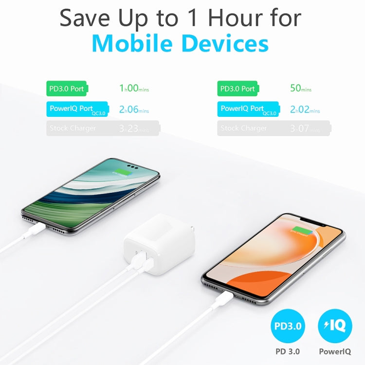 CS-20W Mini Portable PD3.0 + QC3.0 Dual Ports Fast Charger with 3A USB to Type-C Data Cable, Charger + USB to Type-C Cable